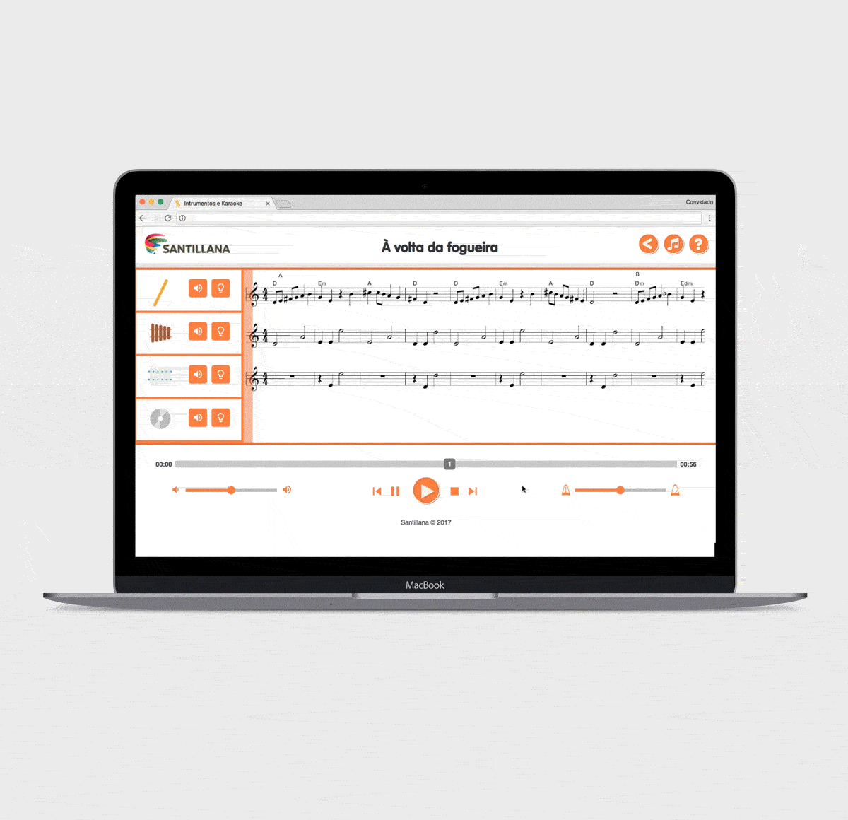 All graphics present in the application were created and developed by our team for this sole purpose. We follow the graphic line and colors of the school manual "Música Seis".